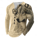 Men's Wolf Long Sleeve T shirt 3D Print Crew Neck Shirt Fashion Retro Vintage Outdoor Casual Holiday Blue Sky Blue Brown Fall Clothing Apparel Normal S M L XL XXL XXXL |