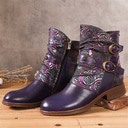 Women's Vintage Floral Embroidered Lace-Up Ankle Boots - Bohemian Style Leather Boots with Side Zipper for Fall and Winter |