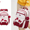 Girls' Red and White School Backpack – Cute Large Capacity Bookbag with Star Patches and Pom-Pom Charm for Teens |
