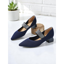 Women's Army Green Knit Block Heel Pumps with Rhinestone Elastic Strap, Stylish Comfortable Office Shoes for Teachers, Receptionists and Daily Workwear |