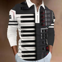 Music Festival Men's Music Zip Polo Shirts Golf Shirt Long Sleeve Polo Shirts Collared Shirts Casual Vacation Wear Festival Wear Party Outfits 3D Print Quarter Zip Polo Black White Yellow |