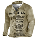 Men's Khaki Long Sleeve Polo Shirt with Inspirational 'My Daughter I Am The Storm' Lion Graphic, Perfect Dad Gift |