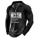 Mens Funny Beer Drinking Humor Quarter-Zip Long Sleeve Graphic Tee |