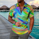 Men's Golf Shirt Short Sleeve Candy Print Casual Optical Illusion Turndown Tops Green Black Blue Gray Rainbow 3D Print Daily Button-Down Print Fashion Designer Breathable / Sports |