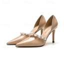 Women's White Patent Leather Pointed Toe Stiletto Heels with Pearl Strap – Elegant Prom, Party, and Wedding Shoes |