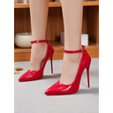 Women's Black Patent Leather Stiletto Heels with Ankle Strap - Sexy Pointed Toe High Heels for Nightlife Parties and Clubwear |