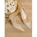 Elegant White Bridal Stiletto Heels for Bride – Pointed Toe Wedding Shoes with Crystal Embellishment