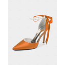 Women's Champagne Satin Wedding Heels with Pearl Ankle Strap - Elegant Bridal & Cocktail Stiletto Pumps