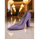 Women's Purple Rhinestone Square Heel Pumps - Pointed Toe Glitter Party Shoes for Cocktail Events and Evening Wear