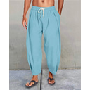 Men's Linen Pants Summer Pants Beach Pants Harem Pants Drawstring Pocket Elastic Waist Plain Comfort Breathable Ankle-Length Vacation Daily Holiday Hawaiian Boho Lake blue Black |