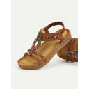 Women's Brown Beaded T-Strap Flat Sandals – Boho Ethnic Style Summer Shoes for Casual Outings, Travel, and Beach Vacations |