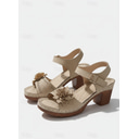 Women's Chunky Heel Floral Sandals – Brown Faux Leather Summer Shoes with Ankle Strap & 3D Flower Design for Garden Walks and Outdoor Gatherings |