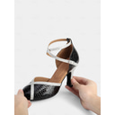 Women's Black Satin Cross-Strap Ballroom Dance Shoes with Rhinestone Buckle, Comfortable Heels for Latin and Salsa Dancing |