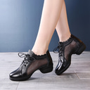 Women's Black Breathable Latin Dance Shoes, Lace - Up Ballroom Dance Sneakers with Suede Sole for Comfortable Practice |