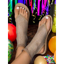 Black Fishnet Sandals with Rhinestone Embellishments – Open Toe, Comfortable Flats for Women – Ideal for Festivals and Casual Parties |