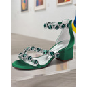 Women's Blue Satin Block Heel Sandals - Rhinestone Embellished Evening Shoes with Ankle Strap for Formal Banquets and Cocktail Parties |
