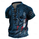 4th of July 2026 250th Memorial Day Men's Patriotic Patriot 3D Print US Flag Veteran Lace up Short Sleeve T-Shirt Casual Sports