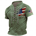 4th of July 2026 250th Memorial Day Men's Patriotic Patriot 3D Print US Flag Veteran Lace up Short Sleeve T-Shirt Casual Outdoor Sports