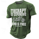 Men's Short Sleeve Graphic T-Shirt | Therapy Is Expensive Wind Is Free Motorcycle Rider Quote Tee |