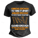 Men's T-Shirt Funny Mechanic Graphic - 'Curious Enough, Skilled Enough, Clever Enough To Hide Extra Parts When Done' Humor Tee, Short Sleeve. |