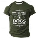 Dog Lover Men's Graphic T-Shirt: Medicine Heals The Body Dogs Heal The Soul, Short Sleeve Pet Owner Tee