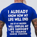 Mens Funny Graphic T-Shirt: 'My Children Will Unplug My Life Support to Charge Their Phone' Family Humor