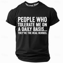 Men's Funny Graphic Short Sleeve T-Shirt: Red 'People Who Tolerate Me' Real Heroes Quote |