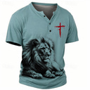 Men's Graphic Lion Cross T Shirt Henley Shirt Short Sleeve 3D Print Retro Vintage Casual Sports Outdoor Holiday Going out Spring & Summer Blue Sky Blue Khaki Gray Henley Henley T-Shirt |