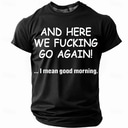 Men's Sarcastic Graphic 'And Here We Fucking Go Again' Funny Lifestyle Short Sleeve T-Shirt |