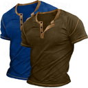 2 Piece Men's Henley Shirt Tee Top Short Sleeve Plain Raglan Sleeve Fashion Designer Basic Button Up 2 Pack Henley Vacation Street Casual Summer All Season |