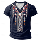Men's Tribal T Shirt Short Sleeve 3D Print Vacation Fashion Ethnic Casual Summer Spring Dark Blue Henley Henley T-Shirt |