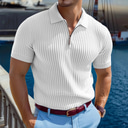 Men's Zip Polo Textured Vacation Casual Lapel Quarter Zip Short Sleeve Fashion Basic Plain Ribbed Quarter Zip Summer Slim Fit Light Blue White Navy Blue Gray Zip Polo |