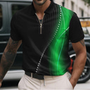 Men's Geometic Line Zip Polo Shirts Short Sleeve Polo Shirts Collared Shirts Business Casual Business Athleisure Wear to work Daily Wear 3D Print Summer Red Blue Purple |