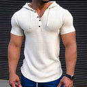 Men's Waffle Knit Tee Tee Top Short Sleeve Hooded Summer Solid Color Daily Casual Buttons Hooded Outdoor Street Causal Green White khaki Top Tee for Men |