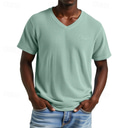 Men's Waffle Tee T Shirt Tee Short Sleeve Shirt Short Sleeve V Neck Summer Plain Fashion Designer Basic Jacquard Vacation Street Going out Apricot Black Purple Top Tee for Men