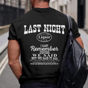 Men's Funny Graphic T-Shirt: 'Last Night Liquor Talk, I Can't Remember' Quote Short Sleeve Lifestyle Tee |
