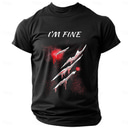 Men's Short Sleeve Graphic T-Shirt with 'I'M FINE' Bloody Claw Marks Print, Dark Humor Ironic Lifestyle Tee |