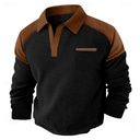 Men's Waffle Tee Long Sleeve V Neck Lapel Fall Spring & Fall Solid Color Fashion Basic Casual Color Block Casual Street Sports Black Navy Blue khaki Top Tee for Men |