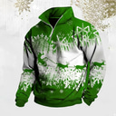Christmas Men's Elk Snowflake Zip Polo Shirts Long Sleeve Polo Shirts Lapel Casual Outdoor Festival Outfit 3D Print Fall Winter Black Red Green |