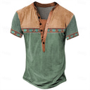 Men's Tribal T Shirt Henley Shirt Tee Short Sleeve Designer Basic Bohemian Outdoor Casual Daily Summer Lake Blue Light Green Light Blue Khaki Henley Henley T-Shirt |