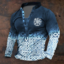 Men's Graphic Viking Henley Shirt Long Sleeve 3D Printing Daily Retro Vintage Casual Holiday Going out Festival Spring & Fall Black Blue Brown Green Henley Henley T-Shirt |