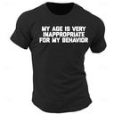 Men's T-Shirt with Funny 'My Age Is Very Inappropriate For My Behavior' Graphic Print, Short Sleeve Humorous Lifestyle Top |
