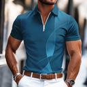 Men's Geometic Line Zip Polo Shirts Short Sleeve Polo Shirts Collared Shirts Business Casual Business Athleisure Wear to work Daily Wear 3D Print Summer Black Blue Gray |
