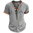 Men's Tribal Ethnic T Shirt Henley Shirt Tee Short Sleeve Designer Cultural Basic Outdoor Casual Daily Summer Light Blue Khaki Light Grey Henley Henley T-Shirt |