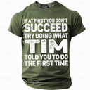 Men's Funny Red Graphic T-Shirt - 'If At First You Don't Succeed, Try What Tim Told You The First Time' Wordplay Tee |
