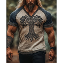 Men's T Shirt Tee Short Sleeve Shirt Tee Top Short Sleeve V Neck Summer Viking Tree Of Life Yggdrasil Vintage Designer Ethnic Style Print Vacation Street Going out Blue Khaki Dark Blue Top Tee for Men |