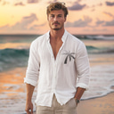 Men's Cotton Linen Shirt Palm Tree Outdoor Vacation White Blue Long Sleeve Turndown Summer Spring Clothing Apparel