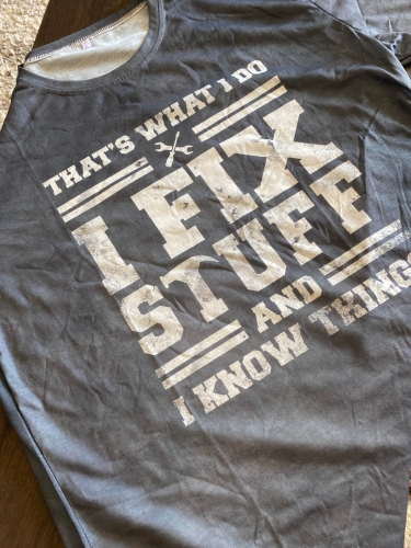 I got it and it was as stated it would be. I like the saying on the shirt and my husband is wearing it right now. I got it and it was as stated it would be. I like the saying on the shirt and my husband is wearing it right now.