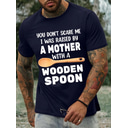 Mens Graphic T-Shirt Funny 'You Don't Scare Me, Raised by Mother with Wooden Spoon' Short Sleeve Family Humor Tee, Grey |