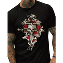 Men's Gothic Skull & Roses Graphic T-Shirt - Edgy Barbed Wire Anchor Tee Short Sleeve |